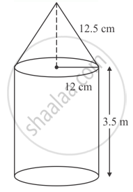 The interior of a building is in the form of a cylinder of base radius 12 m and height 3.5 m, surmounted by a cone of equal base and slant height 12.5 m. Find the internal curved surface area and the capacity of the building.