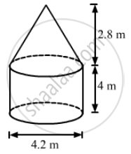 Radius of the cylinder = Radius of the cone `= "r" = 4.2/2 = 2.1 "m",`
