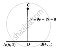 The line through the points (h, 3) and (4, 1) intersects the line 7x – 9y – 19 = 0. at right angle. Find the value of h.