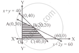 The feasible region lies on the origin side of x + y = 40 and x + 2y = 60, in first quadrant.