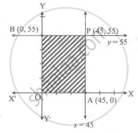 Subject to the constraints x ≤ 45, y ≤ 55 and x ≥ 0, y ≥ 0 is ______.