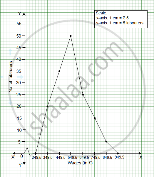 | Wages (in ₹) | Mid-value | No. of labourers |