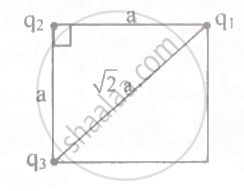 `"F"_12 = 1/(4piepsilon_0) . "q"^2/"a"^2 and "F"_13 = 1/(4pi epsilon_0) . "q"^2/("a"sqrt2)^2`