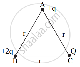 ∴ `1/(4piε_0).(2"q"^2)/"r" + 1/(4piε_0).(2"q""Q")/"r" + 1/(4piε_0).("q""Q")/"r" = 0`