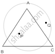 त्रिभुज ABC का एक रफ चित्र खींचिए। इस त्रिभुज के अभ्यंतर में एक बिंदु P अंकित कीजिए और उसके बहिर्भाग में एक बिंदु Q अंकित कीजिए। बिंदु A इसके अभ्यंतर में स्थित है या बहिर्भाग में स्थित है?