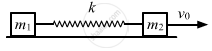 Two blocks of masses m1 and m2 are connected by a spring of spring constant k (See figure). The block of mass m2 is given a sharp impulse so that it acquires a velocity v0 towards right. Find (a) the velocity of the centre of mass, (b) the maximum elongation that the spring will suffer.