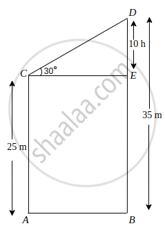 In ΔCDE, tan 30° = `("DE")/("CE")`