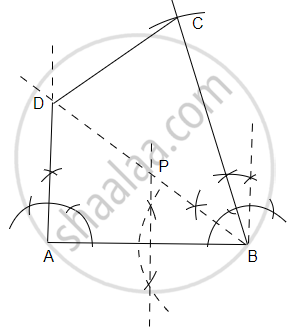 Use ruler and compasses for the following question taking a scale of 10 m = 1 cm. A park in a city is bounded by straight fences AB, BC, CD and DA. Given that AB = 50 m, BC = 63 m, ∠ABC = 75°. D is a point equidistant from the fences AB and BC. If ∠BAD = 90°, construct the outline of the park ABCD. Also locate a point P on the line BD for the flag post which is equidistant from the corners of the park A and B.