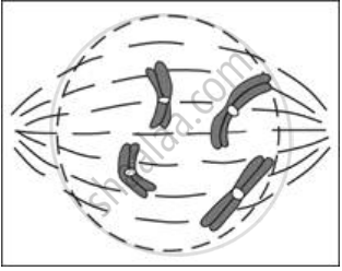 Given below is a diagram representing a stage during mitotic cell division. Study it carefully and answer the question that follow.