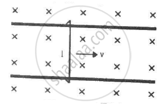 Figure shows a wire sliding on two parallel, conducting rails placed at a separation l. A magnetic field B exists in a direction perpendicular to the plane of the rails. What force is necessary to keep the wire moving at a constant velocity v?