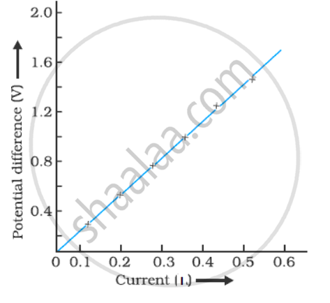 At constant temperature, if current is plotted against potential difference, the plot will be a straight line making some slope with the x-axis as shown in figure below: