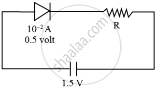 When a diode is forward biased, it has a voltage drop of 0.5 V. The safe limit of current through the diode is 10 mA. If a battery of emf 1.5 V is used in the circuit, the value of minimum resistance to be connected in series with the diode so that the current does not exceed the safe limit is 100 Ω.