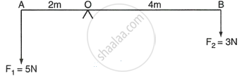 The diagram in Fig shows two forces F1 = 5 N and F2 = 3 N acting at points A and B respectively of a rod pivoted at a point O, such that OA = 2 m and OB = 4 m.