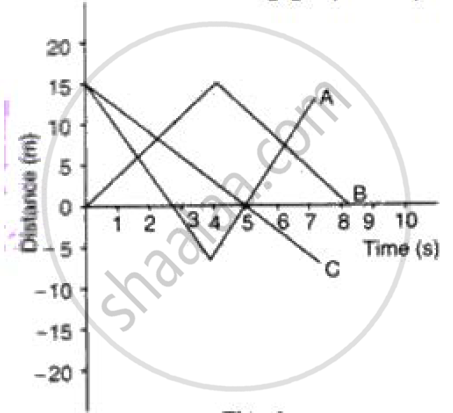Figure shows the distance-time graph of three students A, B and C. On the basis of the graph, answer the following :