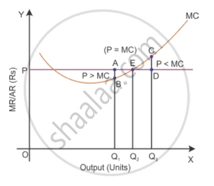 Suppose OQ1 is the output level at the price AQ1 and the marginal cost is BQ1, then it would be AQ1 > BQ1. Here, OQ1 is not the level of output at which the profit is maximised. So, the firm can increase its profit by increasing the production to the OQ2 level of output.