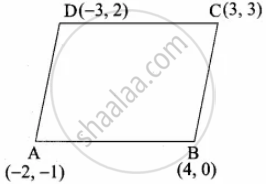 Without using distance formula, show that the points (−2, −1), (4, 0), (3, 3) and (−3, 2) are vertices of a parallelogram