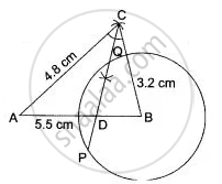 - Triangle ABC, in which AB = 5.5 cm, BC = 3.2 cm and CA = 4.8 cm.