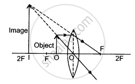 Write down the characteristic of the image formed when the object is between F and the lens?
