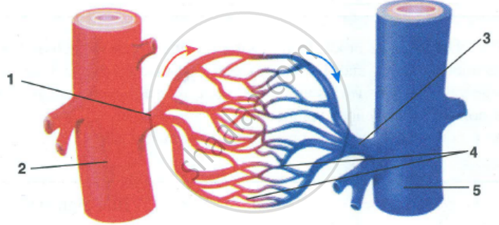 Given below is a simple diagram of the circulation of blood in a mammal showing the main blood vessels, the heart, lungs, and body tissues. The blood vessel labeled 6 contains deoxygenated blood and 2 the valve leading to it has three semi-lunar pockets.