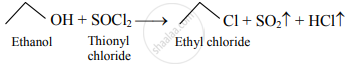 \[\ce{\underset{\text{Ethene}}{CH2 = CH2} + HCl -> \underset{\text{Ethyl chloride}}{CH3 - CH2 - Cl}}\] - Thionyl chloride: