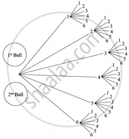 Write the sample space for selecting two balls from a bag containing 6 balls numbered 1 to 6 (using tree diagram).
