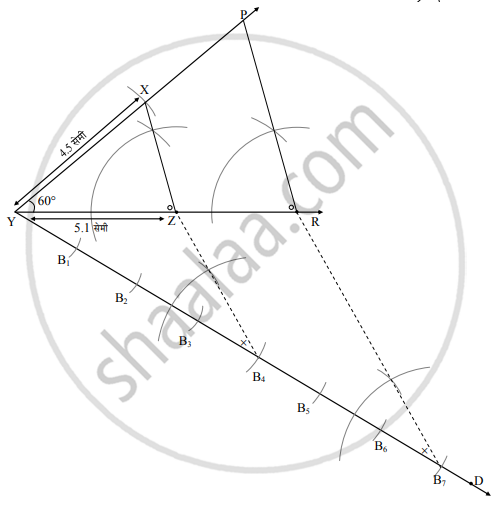 ΔXYZ ∼ ΔPYR. ΔXYZ मध्ये, XY = 4.5 सेमी, ∠Y = 60°, YZ = 5.1 सेमी व `"XY"/"PY" = 4/7,` तर ΔXYZ व ΔPYR काढा.