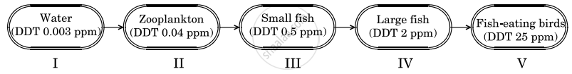 Indiscriminate use of chemicals, pesticides and weedicides by humans are polluting our water bodies, which in turn are harming the living organisms. Study the flow chart and answer the questions based on it.