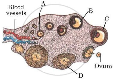 Study the transverse section of human ovary given below and answer the questions that follow: