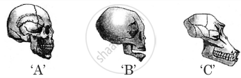 Whose skulls ‘A’, ‘B’, and ‘C’ are shown below? Which of the two are more similar to each other?