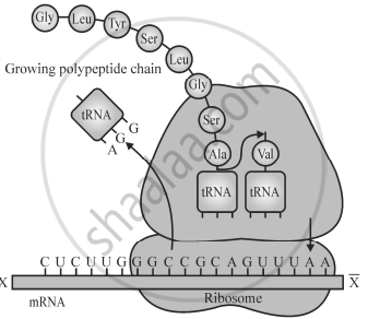 - Identify the polarity from 'X' to '`bar(X)`' in the mRNA segment shown. Mention how many more amino acids can be added to the polypeptide that is being translated and why. [1.5]