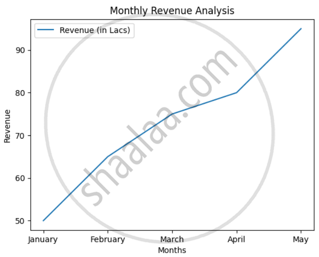 Rohan, a business analyst, is working on a Python program to create a line graph that represents the monthly revenue (in lakhs) of a company over five months. However, some parts of his code are incomplete. Help Rohan by filling in the blanks in the following Python program.