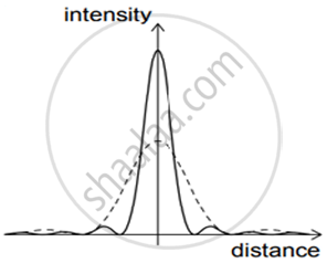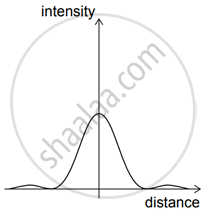 The light from a monochromatic source is incident on a single slit and the resulting diffraction pattern is viewed on a screen. The graph shows the variation of the intensity with the distance on the screen.