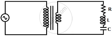 An input potential Vin = 200 sin 100 πt V is provided to an ideal transformer having 1000 turns in the primary coil and 100 turns in the secondary coil as shown in the figure. The load circuit has a resistance of 4Ω, a capacitive reactance of 2Ω, and an inductive reactance of 6Ω.