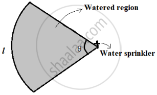 A water sprinkler is set to shoot a stream of water a distance of 21 m and rotate through an angle which is equal to the complementary angle of 10°.