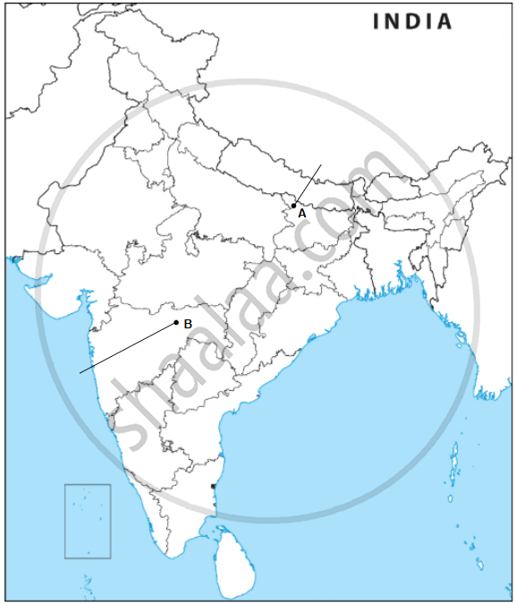 Two places ‘A’ and ‘B’ have been marked on the given political outline map of India. Identify them with the help of the following information and write their correct names on the lines drawn near them.