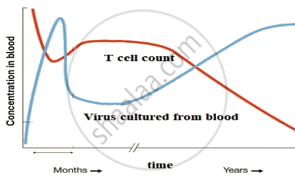 Given below is the relationship between the HIV levels in the blood and helper T-cell count in a person detected with AIDS. Study the relationship and answer the questions that follow.