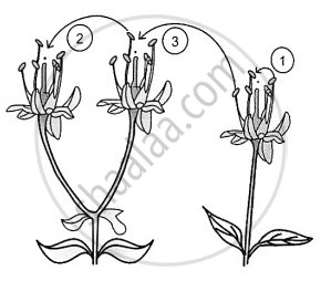 - The given diagram shows three methods of pollination in plants. What are the technical terms used for pollen transfer methods labelled ‘2’ and ‘3’?