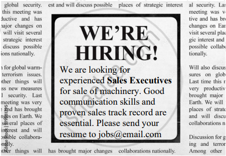 Draft a letter in response to the above job advertisement published in a weekly newspaper.
