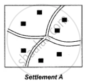 Identify the two types of settlements A and B. State one characteristic feature each of the two settlements.