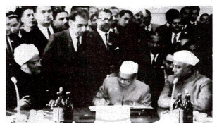 The image given below shows the Prime Minister of India, Lal Bahadur Shastri and President of Pakistan, Ayub Khan attending a Conference in 1966.