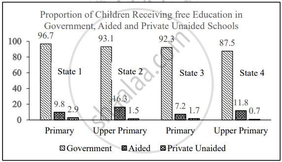 The graph given below depicts the results of the study done to assess the implementation of the Right to Education (2009) in government, aided and private unaided schools in four states in India. Study the graph and answer the question that follows:
