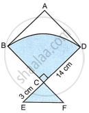 In the kite shown alongside, ABCD is a square. BCD is a quadrant of a circle of radius 14 cm and CEF is an isosceles right-angled triangle with CE = CF = 3 cm. Find the area of the shaded portion.