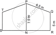 The height PN of P above the ground is 7.5 m. The height QR is 5 m and PQ is 6.5 m. Given that N is the mid-point of SR, find the length of SR and the area of PQRST.