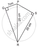 Find the area of quadrilateral PQRS where ∠Q = ∠S = 90° and PQ = 7 cm, PR = 25 cm and RS = 20 cm.