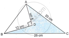 In the figure given below, ∠ADB = 90°, AD = 9 cm, BD = 12 cm, BC = 25 cm and AC = 20 cm. Find the (i) length of AB (ii) area of shaded part.