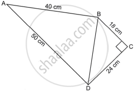In the quadrilateral ABCD, AB = 40 cm, BC = 18 cm, CD = 24 cm, AD = 50 cm and ∠C = 90°. Find the (i) length of BD (ii) area of ABCD.