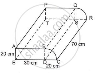 A closed storage container consists of a cuboid ABDEPQST to which a quadrant of a cylinder BCDQRS is attached as shown in the figure. AE = 20 cm, ED = 30 m, DC = 20 cm and CR = 70 cm. Taking π = 3.14, calculate: