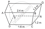 If AB = 2.4 m, DC = 1.6 m, BQ = CR = 1.2 m and height of the container is 1.1 m, find