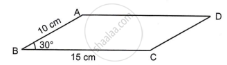 In the given parallelogram ABCD, AB = 10 cm, BC = 15 cm and ∠ABC = 30°. Find the area of ABCD.