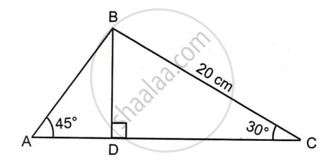 In ΔABC, BD ⊥ AC. ∠A = 45°, ∠C = 30° and BC = 20 cm. Find the length of (i) BD and (ii) AB.
